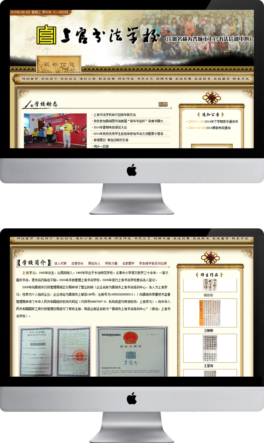 2009年向晉城市行政管理局城區(qū)分局申領(lǐng)了營(yíng)業(yè)執(zhí)照(企業(yè)名稱為晉城市上官書(shū)法培訓(xùn)中心,法人為上官李元,性質(zhì)為個(gè)人獨(dú)資企業(yè),企業(yè)地址為晉城市上輦街196號(hào),注冊(cè)號(hào)為140502828008311。)向晉城市質(zhì)量技術(shù)監(jiān)督管理局申領(lǐng)了中華人民共和國(guó)組織機(jī)構(gòu)代碼證(代碼號(hào)69667007-9,機(jī)構(gòu)類(lèi)型為其他機(jī)構(gòu),上官李元)。向中華人民共和國(guó)國(guó)家工商行政管理總局進(jìn)行了商標(biāo)注冊(cè),商品注冊(cè)證名稱為“晉城市上官書(shū)法培訓(xùn)中心”(原名:上官書(shū)法學(xué)校)。